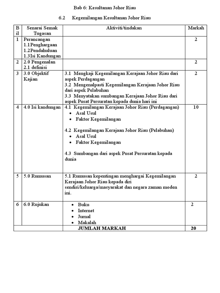 Kajian Kes Bab 6 Kerajaan Johor Riau Doc Bab 6 Kesultanan Johor Riau 6 1 Kegemilangan Johor Riau B Senarai Semak Aktiviti Tindakan Il Tugasan 1 Course Hero